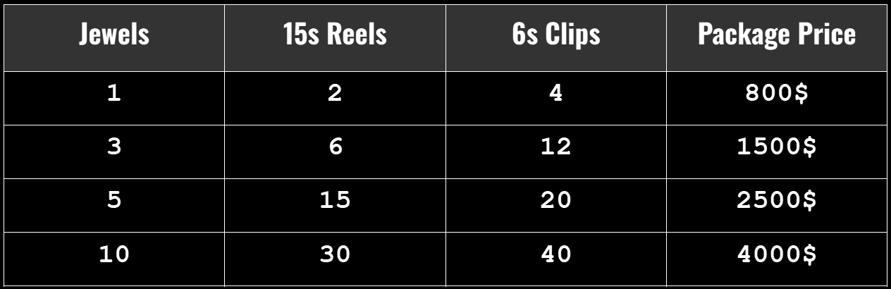 My content packages are designed to help you showcase your creations in beautifully curated micro-productions crafted to captivate your audience.